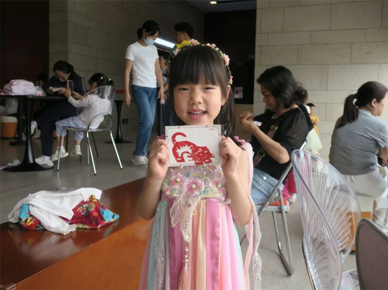 在剪纸体验区,孩子们拿起剪刀,小心翼翼地沿着图案剪裁,一张张普通的红纸在他们的手中逐渐变成了一幅幅精美的剪纸作品。