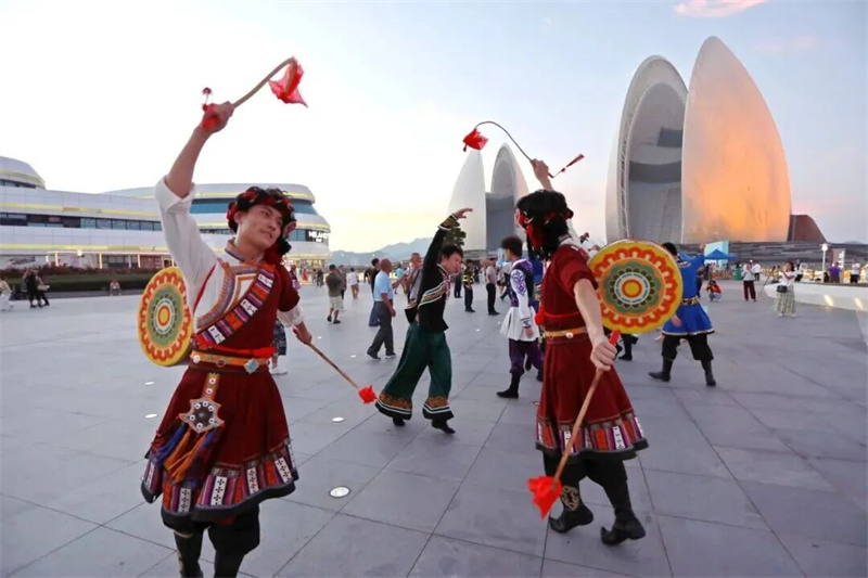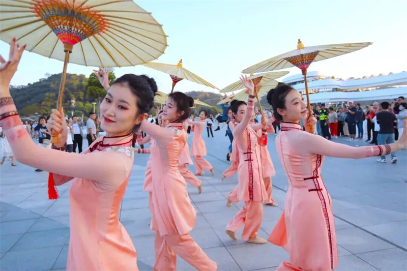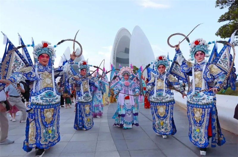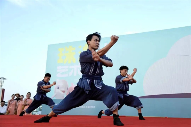 南拳的刚劲、粤剧的婉转、各少数民族舞蹈的绚丽风情……一幅流动画卷在珠海海韵城广场铺展。