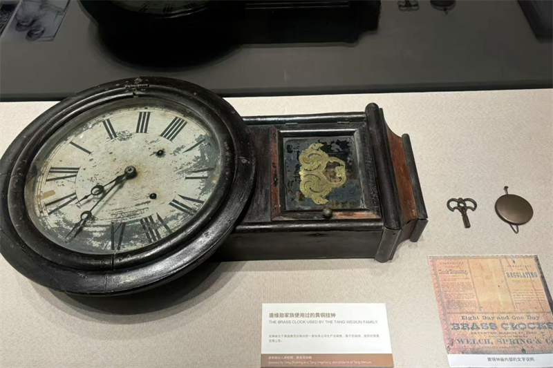 唐智明先生虽然离开家乡五十多年,但他一直坚持常回家乡,要求他的孩子们学习中文,多次捐赠历史资料给珠海博物馆。在我馆领导的陪同下,唐智明先生参观了我馆基本陈列中香山买办和留美幼童的展览,在看到其祖先唐维勋的资料和他与侄子唐景昌捐赠的历经百年岁月的黄铜挂钟及历史照片后非常感动,表示将和他的家人们在美国留意寻找和家乡相关的历史资料,一如既往地支持珠海文化事业发展,让这份情谊代代相传,不断延续文脉与乡情。