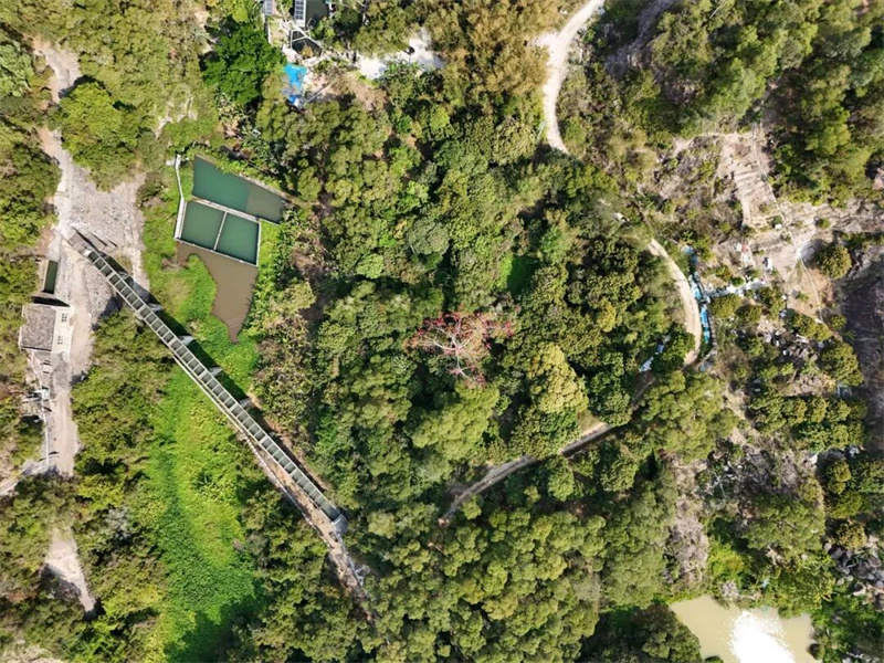 难民营遗址鸟瞰图,中心点红色木棉为营建难民营时手植(吴流芳供图)