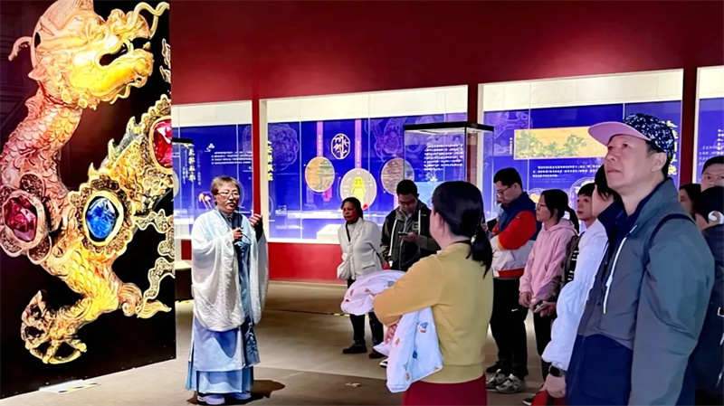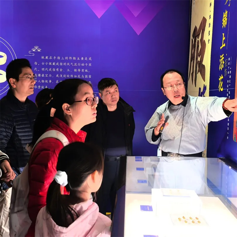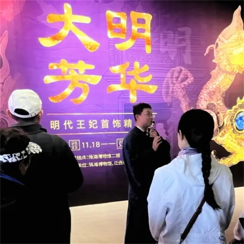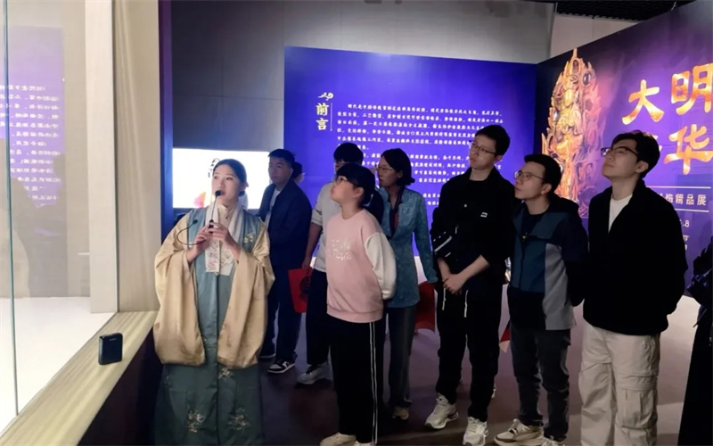 沉浸式的讲解让沉淀于时光的文物重焕新生,观众们跟随着志愿者老师的脚步,细细领略大明芳华与明代美学的独特韵味,在历史与现实的交汇中,感受传统文化的深厚底蕴。