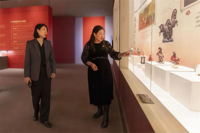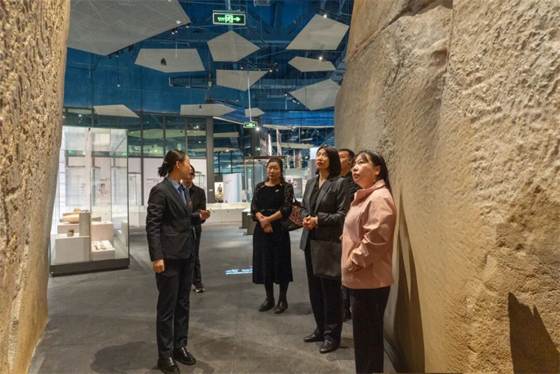 佟金玉馆长参观了我馆的基本陈列展览和《大明芳华——明代王妃首饰精品展》《骐骥踏春——石湾贺年生肖陶艺展》等特展,并重点考察了我馆文创区域、研学活动区域和第三展厅情况。参观过程中,双方围绕策展理念创新、展陈设计提升、研学活动策划等专业议题展开讨论,就东西部博物馆差异化发展路径交换了宝贵经验。