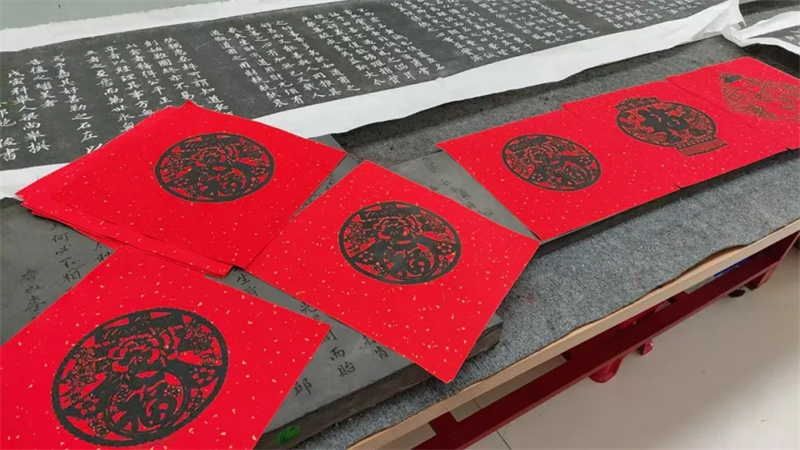 3. 覆上纸张,用滚轮按压平整,揭开即可得到年画轮廓。