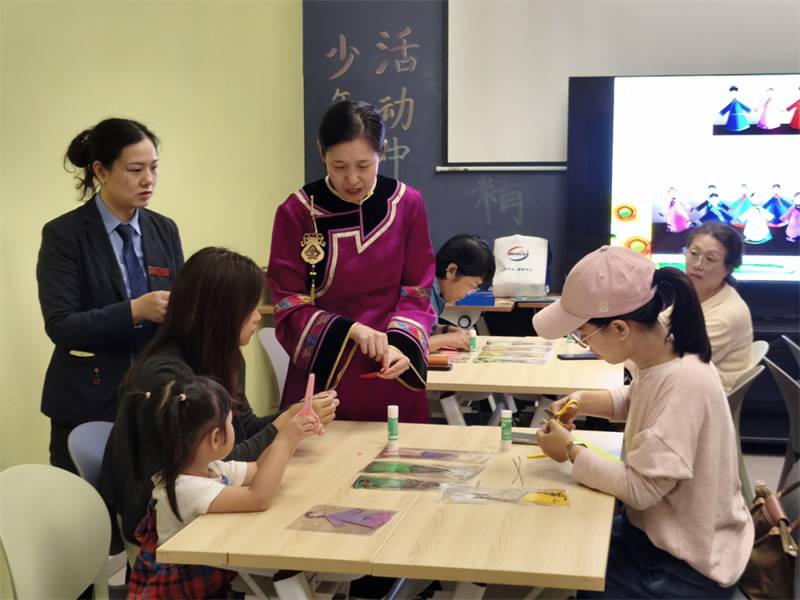 达斡尔族哈尼卡非遗传承人王颖则在博物馆二楼少年儿童教育活动中心,带来了一场别开生面的非物质文化遗产体验课。现场观众在王老师的指导下,亲手制作哈尼卡——达斡尔族传统纸偶,在一剪一折间感受北方民族的生活智慧与审美意趣。